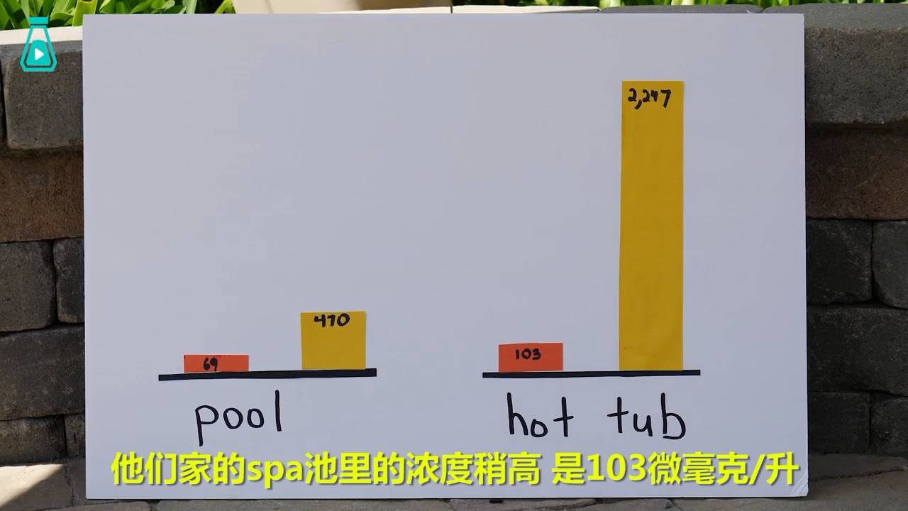 Mark采集的樣品結(jié)果如何呢?他自家泳池中甜味劑的濃度為69微毫克/升,雖然低于平均值很多,仍然相當(dāng)于有差不多3.7升的尿在里面。Mark的私人熱水池里甜味劑濃度稍高,是103毫微克/升。