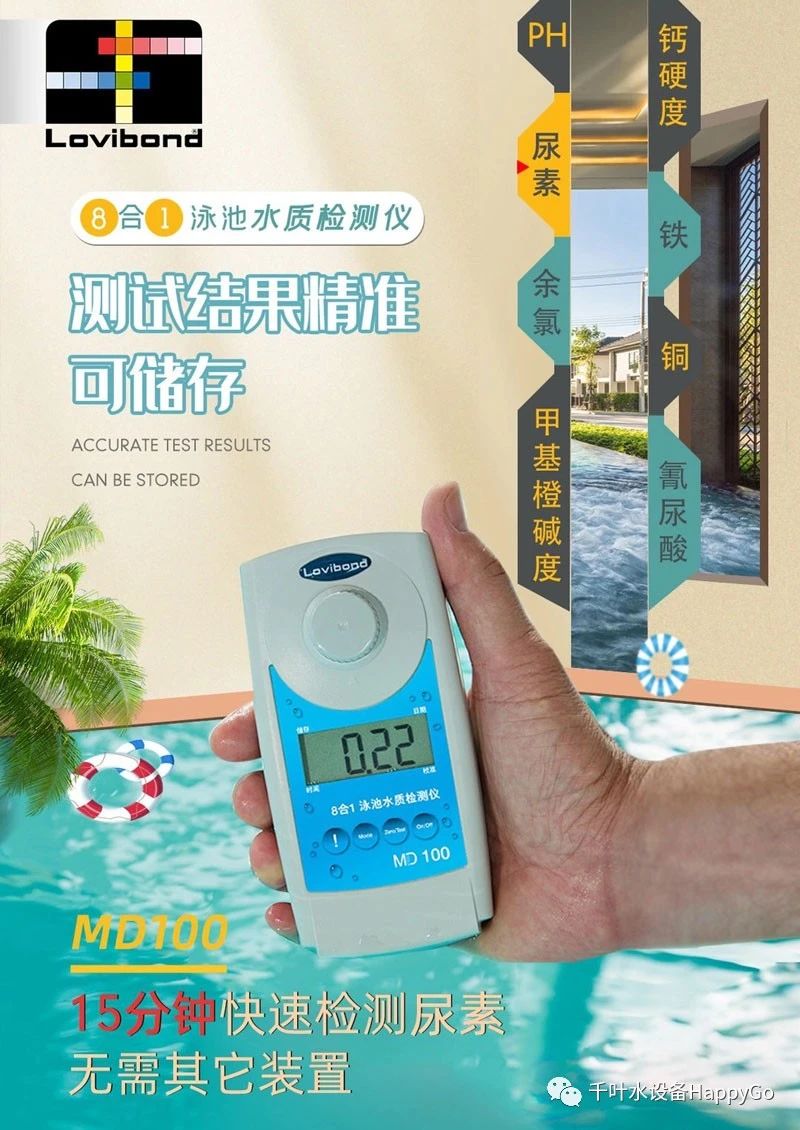 不管是無心之過、還是有意為之,相信泳池管理者對泳池里的尿,都非常頭疼。如何快速檢測泳池中的尿素,做出相應(yīng)的措施呢?Lovibond 羅維邦MD100 8合1泳池水質(zhì)檢測儀是一款多參數(shù)光度計(jì),易于隨身攜帶,適用于池邊快速簡單地水質(zhì)測試。無需其他裝置,8合1泳池水質(zhì)檢測儀可測定國家泳池水質(zhì)標(biāo)準(zhǔn)的8款參數(shù)。套裝中配有測試試劑,開機(jī)即可使用,是您泳池水質(zhì)管理的得力助手。