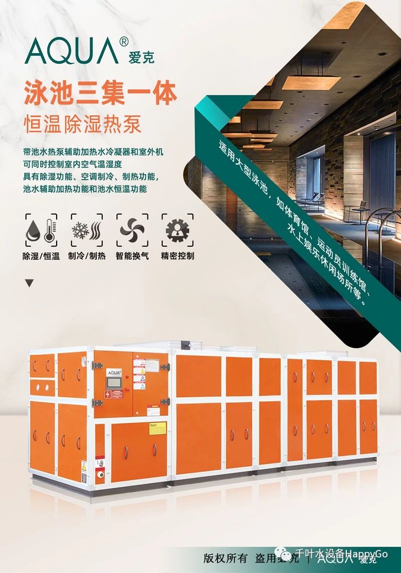 如何保證泳池干凈衛(wèi)生?愛克泳池熱泵負責人表示,泳池要想干凈衛(wèi)生,水質是第一要素,但更應該從整體環(huán)境考慮。第一是泳池空氣的濕度不宜過高,濕度過高會加速細菌繁殖,形成菌落菌群。第二是要保持泳池水的清澈,如果過于渾濁,則說明雜質過多,過濾不當。第三是要將泳池水各種物質、細菌的含量控制在一定比例內,如大腸桿菌等超標,則說明消毒不當。為此,愛克專門打造了以三集一體空氣源恒溫除濕熱泵為核心的全套泳池除濕凈化方案,解決三大難題。